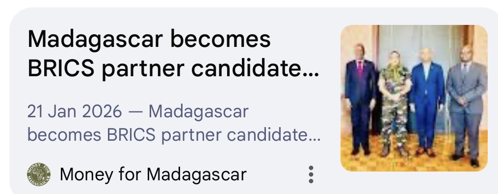 Madagascar has recently expressed interest in strengthening ties with the BRICS group (Brazil, Russia, India, China, and South Africa). This interest aligns with the BRICS platform's goal of enhancing cooperation among emerging economies.